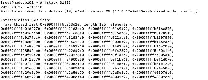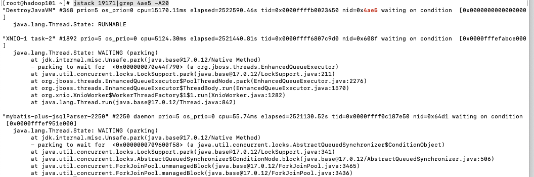 这里面已经打印出来发现一个死锁,以及死锁阻塞的线程id