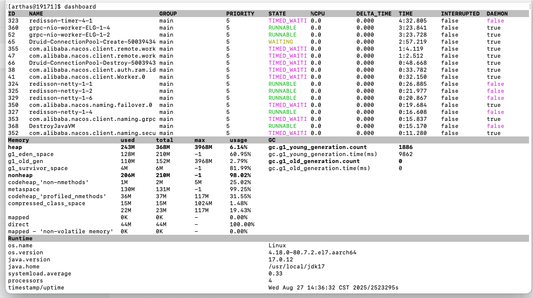 首先需要排查下FGC的情况,看看是否在频繁的进行FGC,可以使用 jstat -gc pid 间隔时间 显