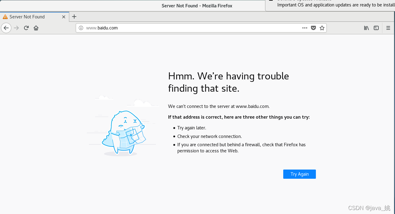 linux(centos7)访问页面Server Not Found 输入命令:cd /etc/sysconfig/network-scripts/输入命令: vim ifcfg-ens33输入修改的参数:IPADDR=192.168.163.100NETMASK=255.255.255.0GATEWAY=192.168.163.2DNS1=8.8.8.8DNS2=114.114.114.114注意!!!这里修改 GATEWAY=192.168.196.2GATEWAY 必须和IP一样最后重启网卡:...