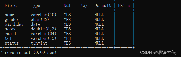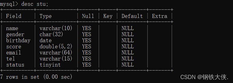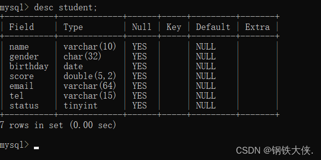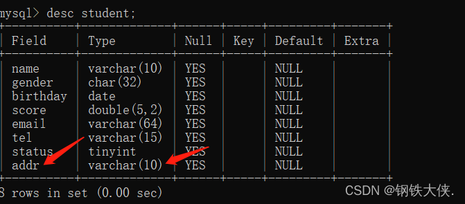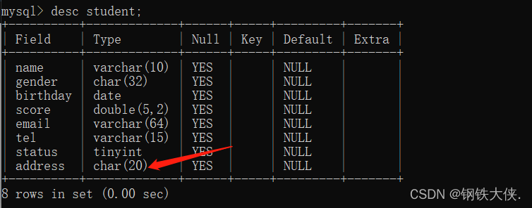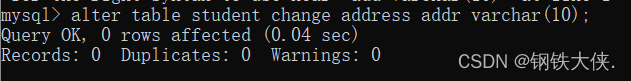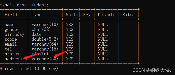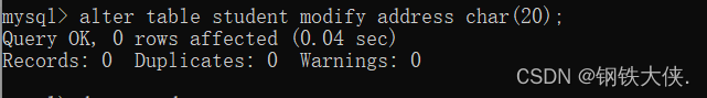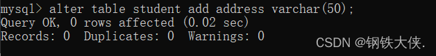 出现新的一列 address 数据类型为varchar(50) 即为成功