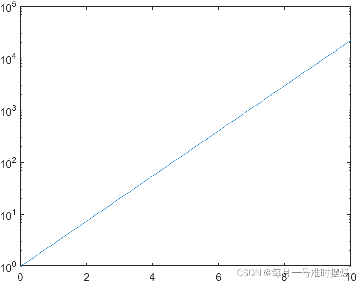 例如下面利用semilogy函数将y=exp(x)用直线的方式表示出来: