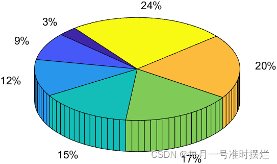 MATLAB中提供了pie3函数来绘制三维饼图,其调用格式如如下所示: