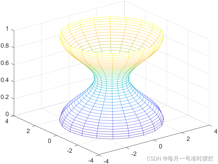 其中,x、y和z分别表示相同行数和列数的向量,k表示为高度的等级度,c表示为曲线的颜色。代码如下所示:
