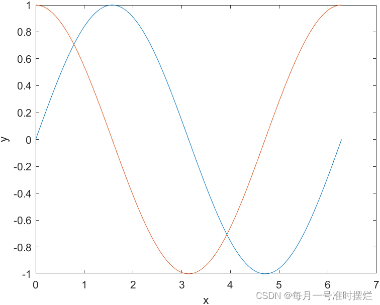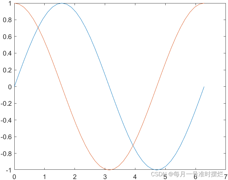 例如,在同一坐标系下同时绘制出正弦和余弦曲线,代码为: