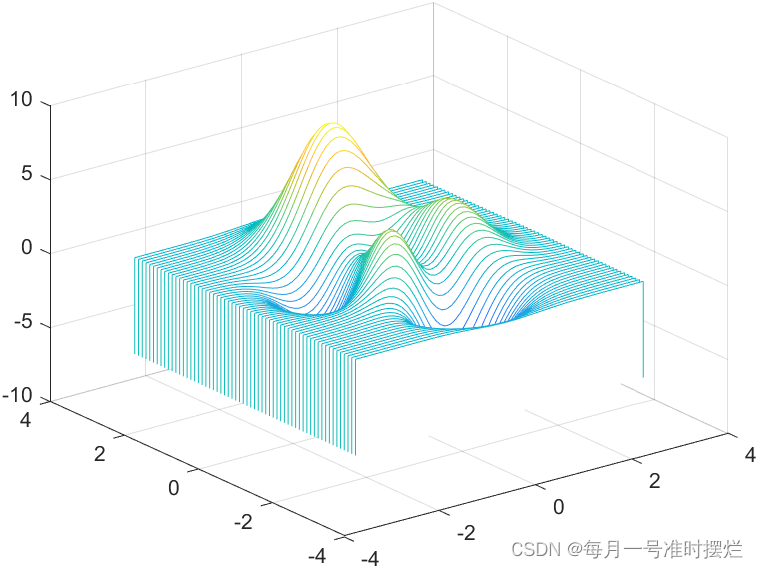 MATLAB提供了waterfall函数来绘制瀑布图,瀑布图是一种等高线图,瀑布图的基本调用格式如下所示: