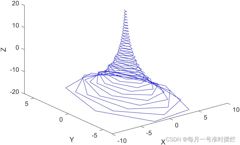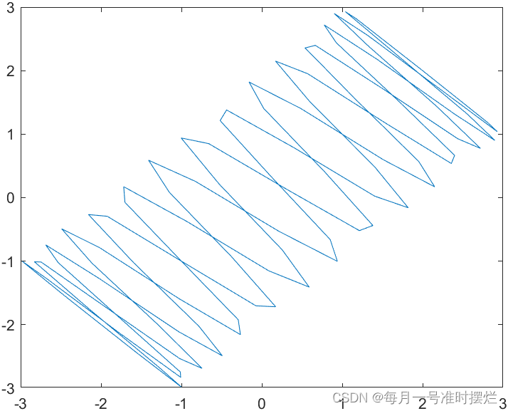 当y是实型的参数时,表示以该元素的下标为横坐标,该元素的值为纵坐标绘制一条曲线;如果y是一个复型向量,则以向量的实部和虚部绘制一条曲线;若y是一条实型矩阵,则按列绘制每一列元素值相对其下标的曲线,曲线的条数等于输入参数矩阵的列数;若y是复型的矩阵,则以实部为横坐标、虚部为纵坐标绘制曲线。