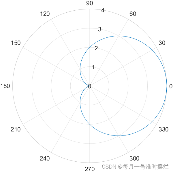 例如,利用polarplot函数来绘制一个心形图,公式如下所示: