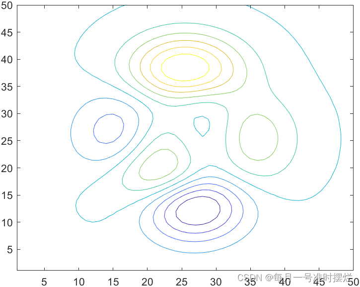 等高线图是在地图上表示起伏的常用方法,它是采用等高线所组成的平面图形来表示地面的高低起伏,等高线图在地理中被广泛应用。等高线是地面上高程相等的各相邻点所连成的闭合曲线。MATLAB提供了contour函数和contourf函数来绘制等高线。这两种函数的用法如下所示: