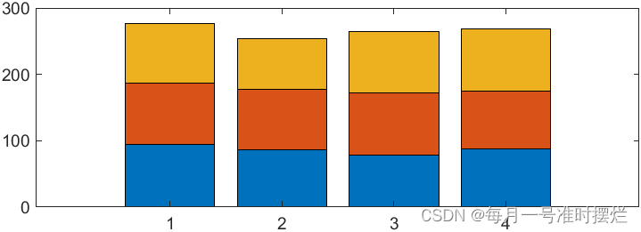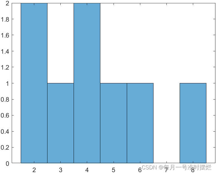 条形类图形中用高度不等的条形来表示数据的大小,如下表所示为MATLAB中条形图和直方图的函数以及功能: