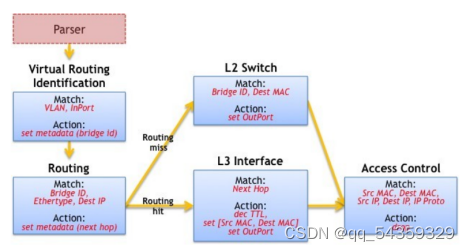 P4是允许定义新的报头的,相较于openflow的解析器来说(而且只能先匹配才能采取动作)。