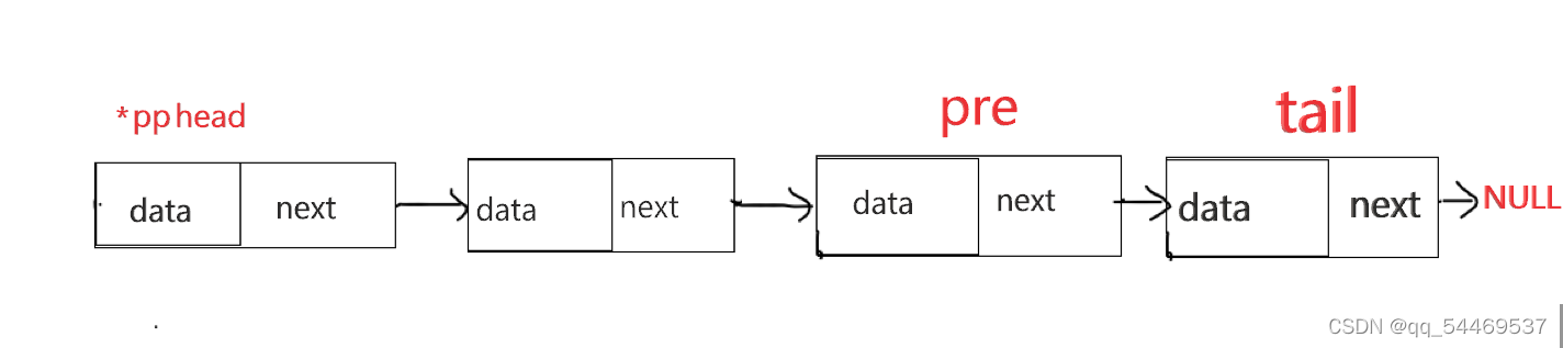 2..如果想插入元素的位置不是头结点,设置一个指针pre去查询想插入数据的位置,当pre->next指向的位置刚好是pos的位置时,将创建好的结点的插入其中即可。