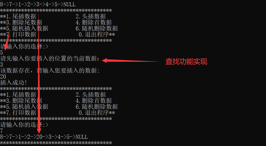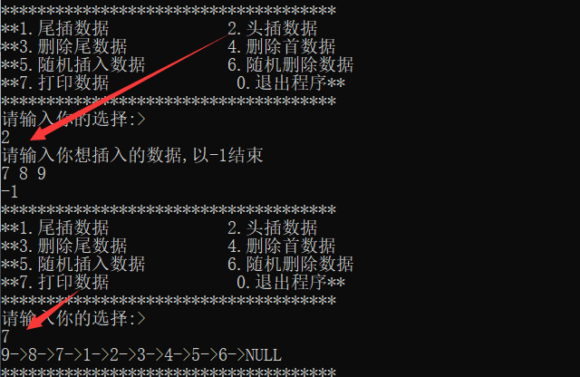 printf("**5.随机插入数据 6.随机删除数据\n");