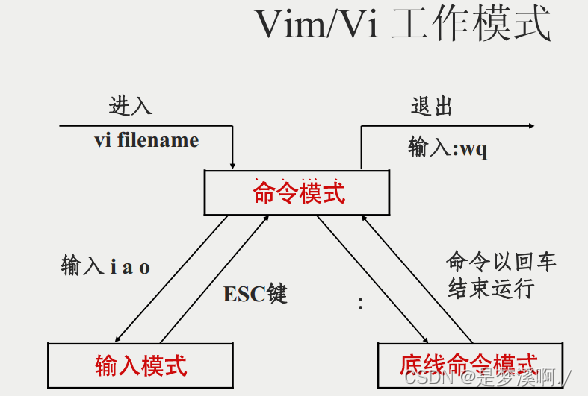 命令模式下,所敲的按键编辑都理解为命令,以命令 驱动执行不同的功能