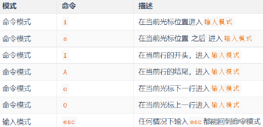 - 通过命令模式输入键盘指令,可以进入输入模式