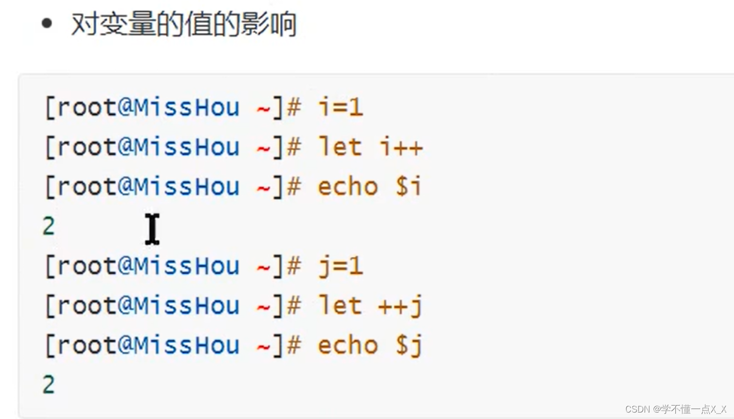 Shell脚本入门概述---变量的定义 如果某个内容需要多次使用,并且在代码中重复出现,那么可以用变量代表该内容。这样在修改内容的时候,仅仅需要修改变量的值。在代码运作的过程中,可能会把某些命令的执行结果保存起来,后续代码需要使用这些结果,就可以直接使用这个变量。变量名=变量值变量名:用来临时保存数据的变量值:就是临时的数据虽然可以给变量(变量名)赋予任何值;但是,对于变量名也是有要求的!变量名区分大小写变量名不能有特殊符号(对于有空格的字符串给变量赋值时,要用引号引起来变量名不能以数字开头(不能以数字开头不代表变量名中不能包含数字。