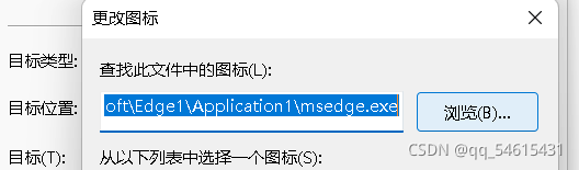 同样选择打开桌面的快捷方式的更改图标,并且复制图标的路径,点击浏览