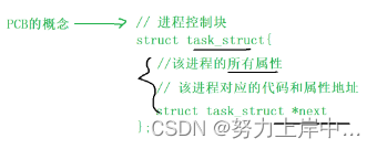- 课本上称之为PCB(process control block), Linux操作系统下的PCB是: task_struct