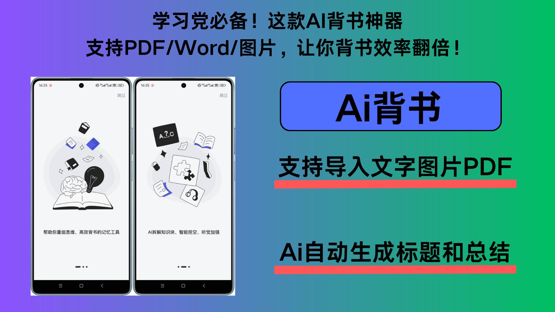 AI 总结生成标题可以为每个知识块生成标题;AI 监督背诵可以记录卡顿、错误和缺失点,生成薄弱知识总结;AI 智能生成题目可以根据背诵内容一键生成几十个相关题目,你可以通过练习这些题目加深记忆学习内容。