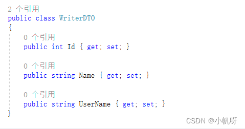 在WriterInfoController.cs控制台上,添加查询管理员的时候添加。这个东西呢主要是就是只显示你想显示的数据。我这里是不把密码显示出来。