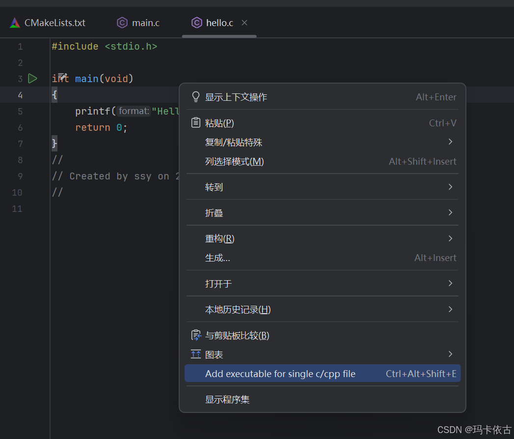 2.在某个main程序右键选择 Add executable for single c/cpp file