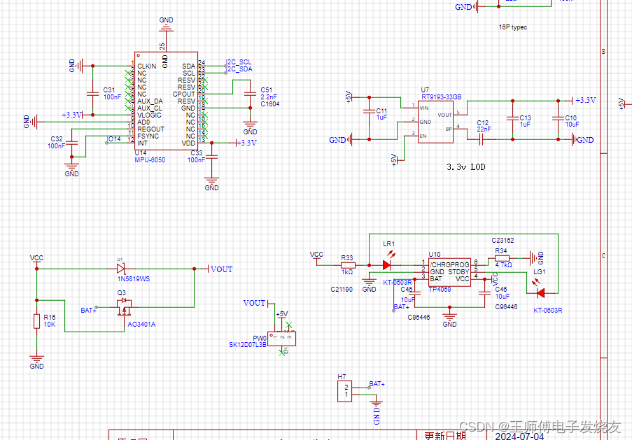 UP的充电电路,5V转3.3V电路,还有电源选择电路如图。