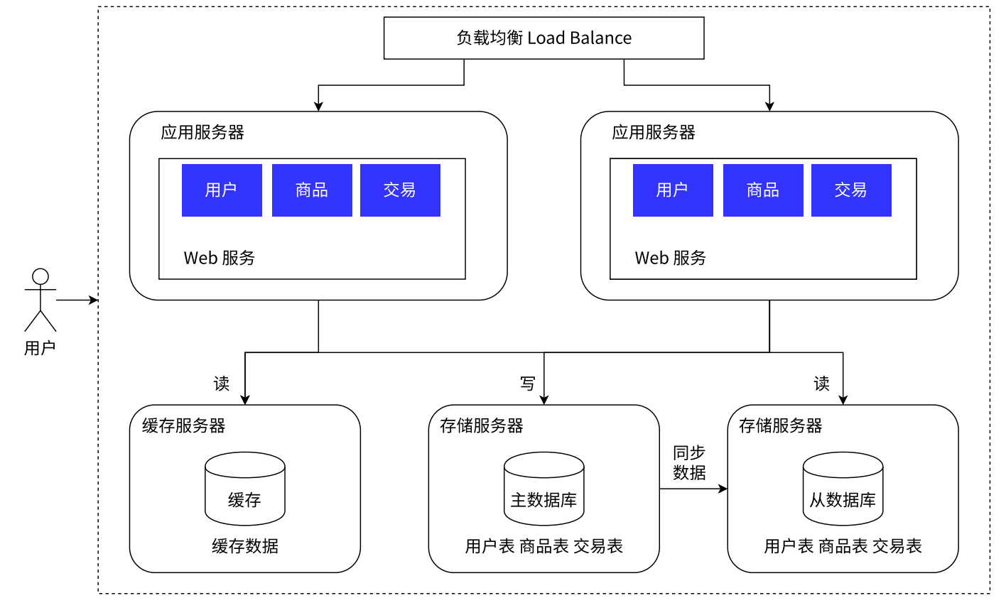所谓的单机架构,就是只有一台服务器,这个服务器负责所有的工作。我们可以看下图:假定这是一个电商网站