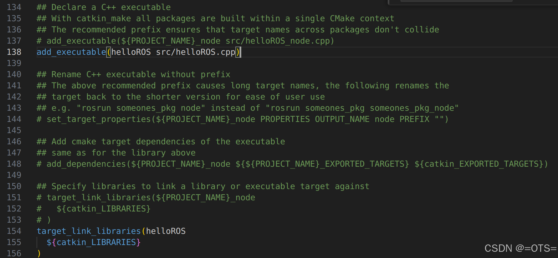 !!切记需要配置的CMakeLists是先前创建的ROS功能包:helloROS下的!!