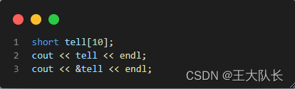 从输出结果上看,地址加了1*16+4=20!而这正好是我们整个数组的长度(short两个字节*10个元素)!因此这证明了数组名tell与对数组名取地址数值是一样,但是意义是完全不一样的!