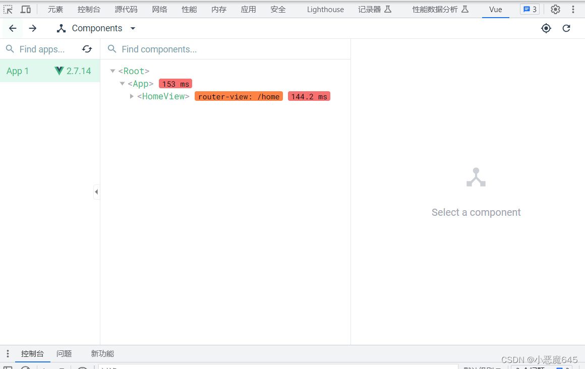 运行vue项目时, 打开F12, 选择“vue”就可以使用了。vue是数据驱动的, 这样就能看到对应数据了, 方便我们进行调试。