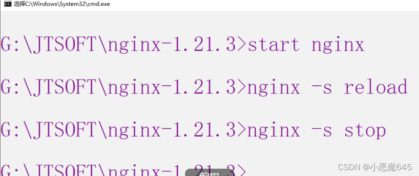 说明: nginx命令执行 需要nginx.exe所在的根目录中执行.