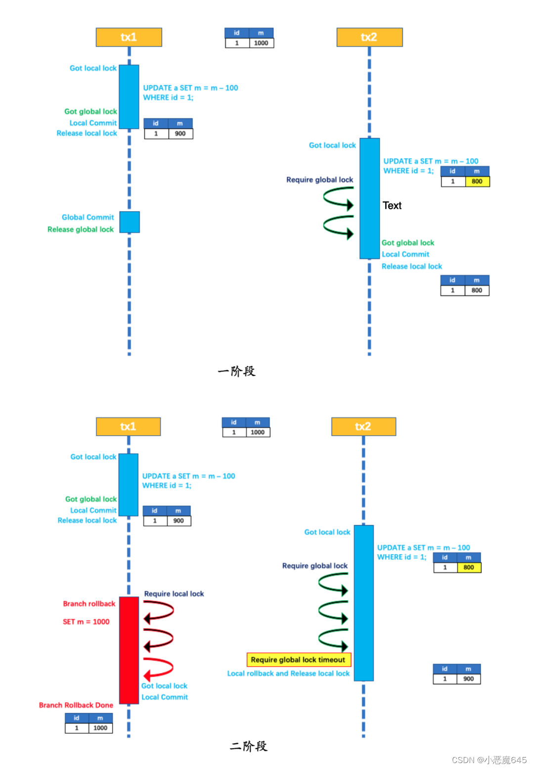 二阶段:在预提交阶段成功后,进入真正的提交阶段。此阶段主要包括提交异步化和回滚反向补偿两个步骤: