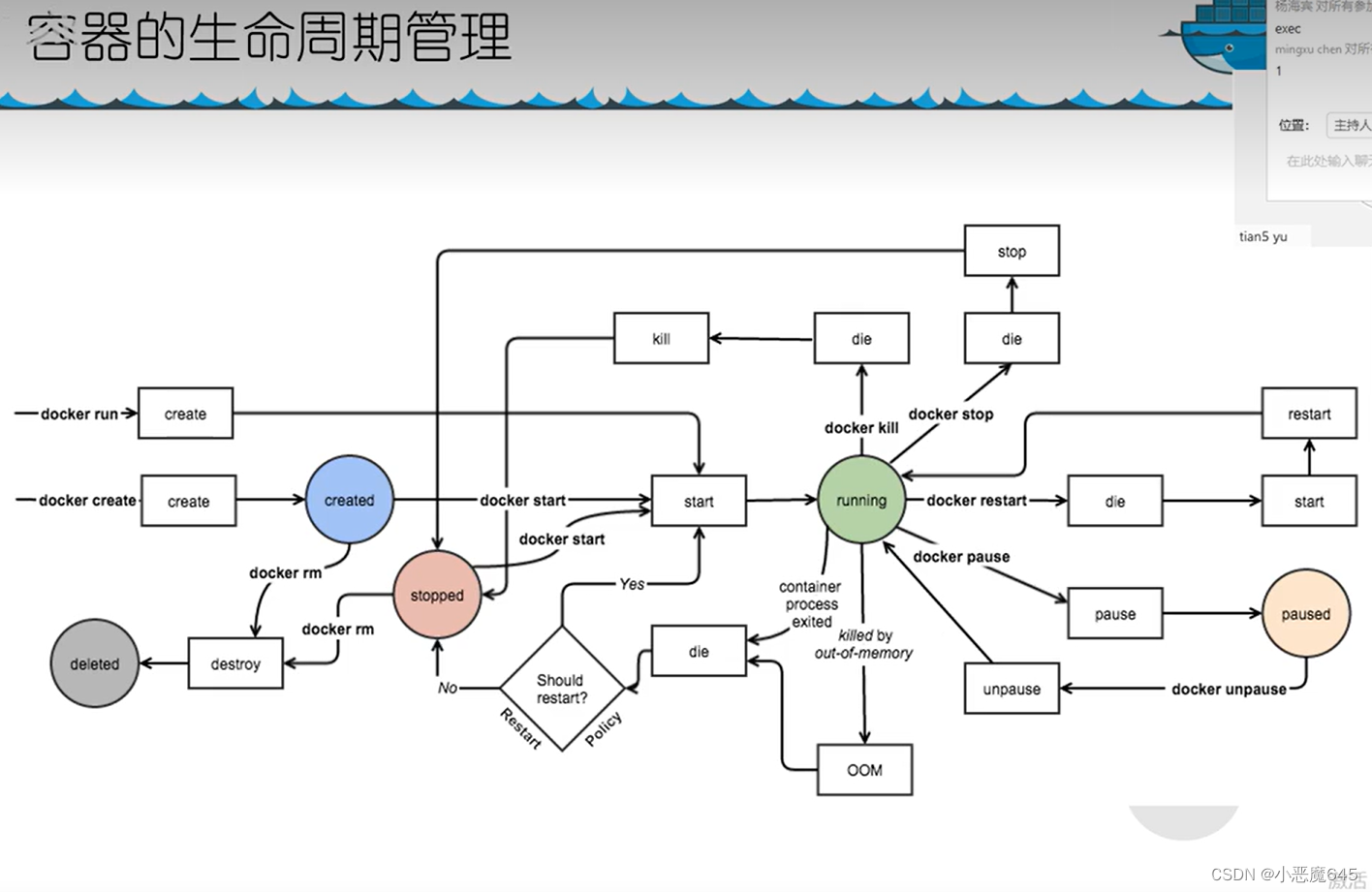 容器运维操作 attach、export、inspect、port、ps、rename、stats、top、wait、cp、diff、update