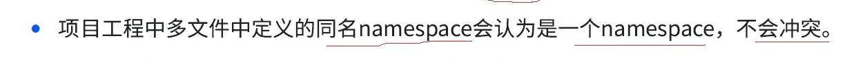 两个文件不同代码,想要用命名空间封装,同一个命名空间可以定义很多份,可在在同一文件定义很多份,也可以多个文件定义很多份,不同文件命名空间可以自动合并,是说当成1个不是说命名空间冲突了