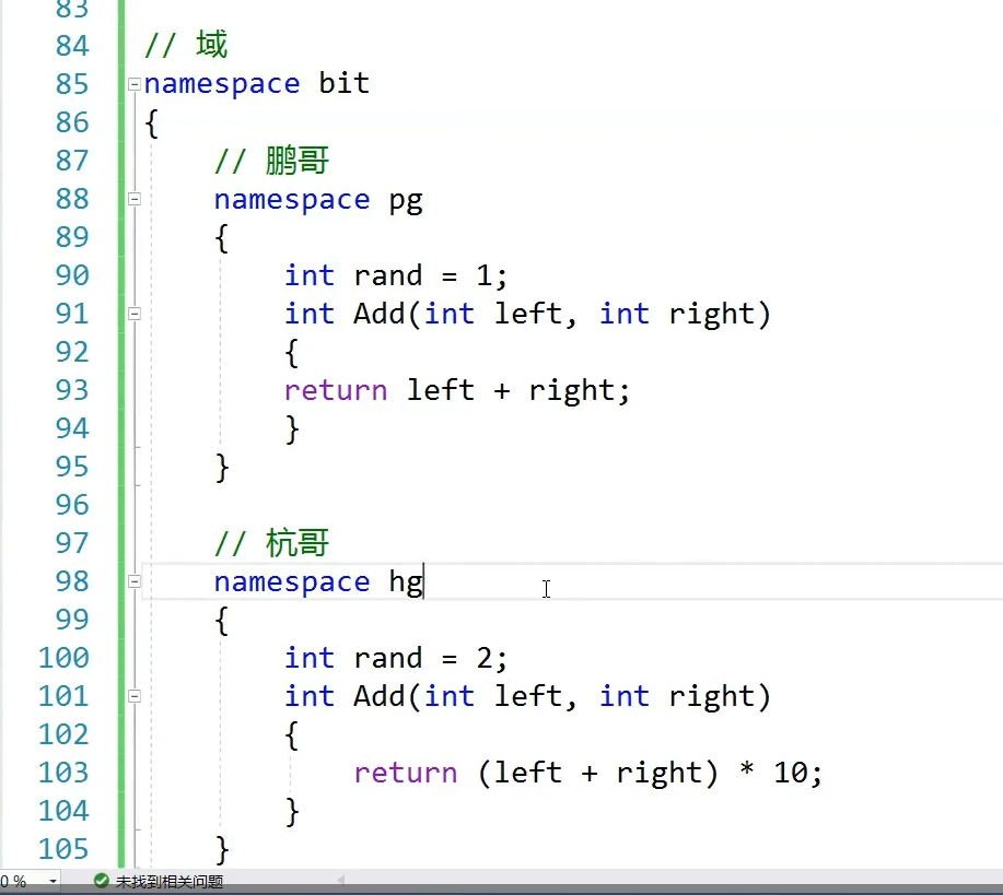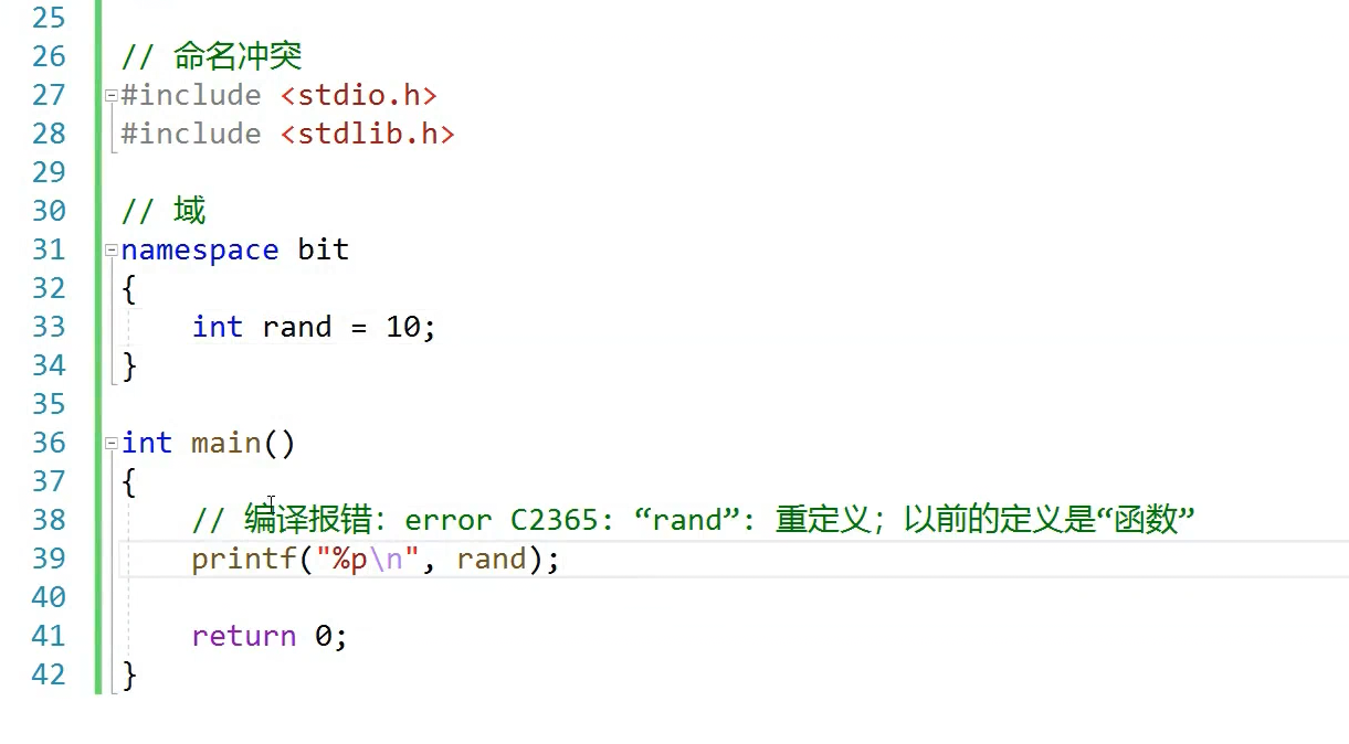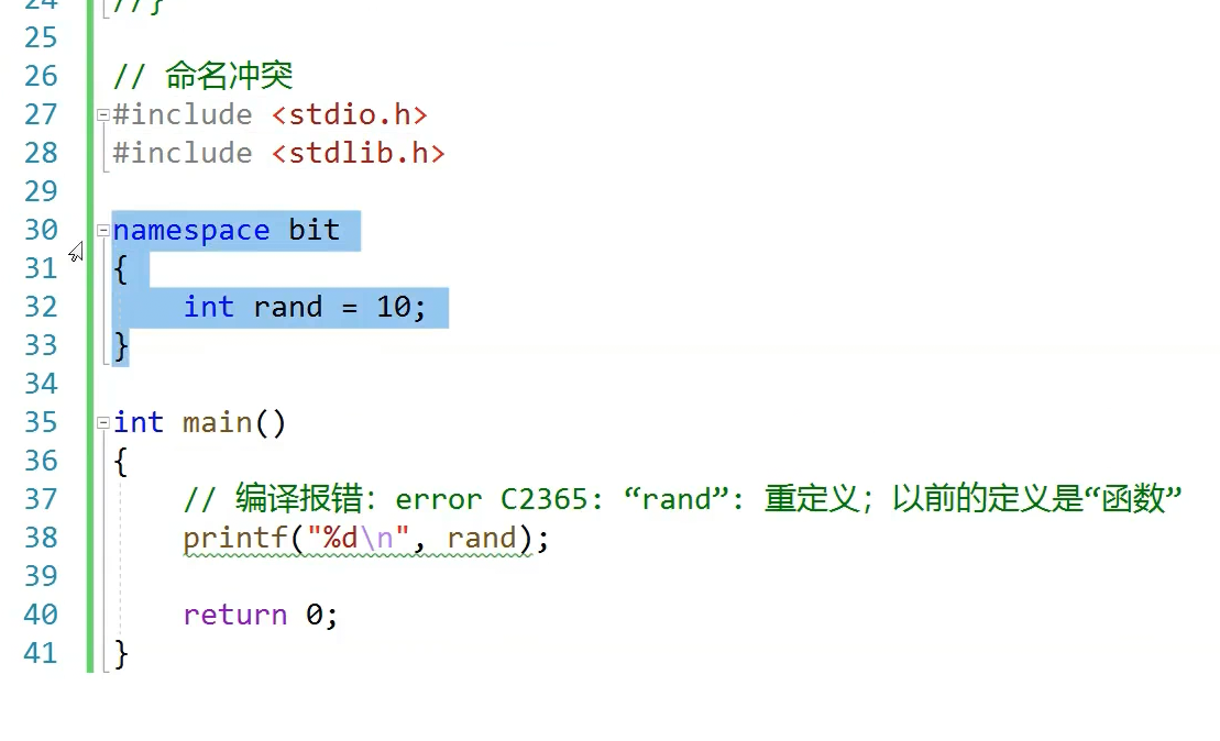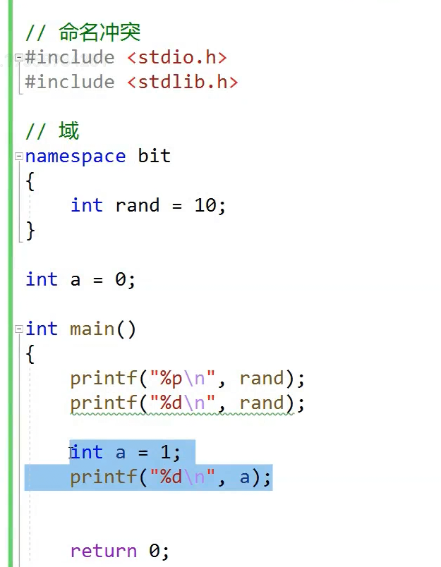 rand访问的是全局的,,上面那个已经封起来了,封起来为什么没问题,命名空间定义的是域同意,同一个域内不能定义同名变量,不同域可以定义同名的,打印出来是个指针