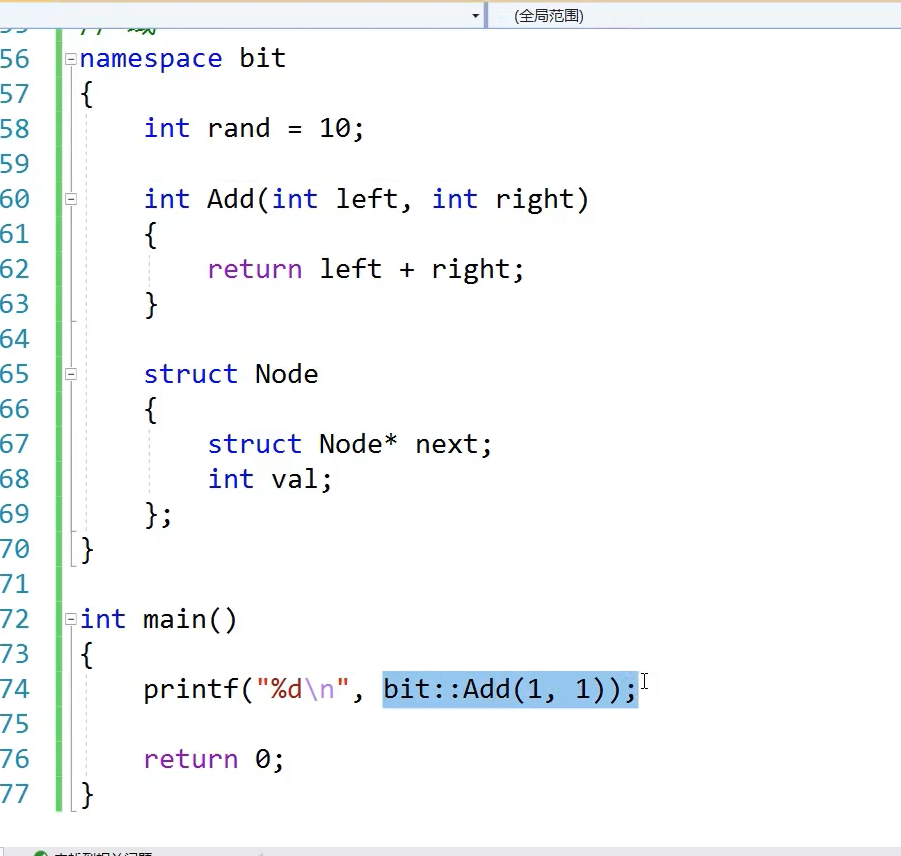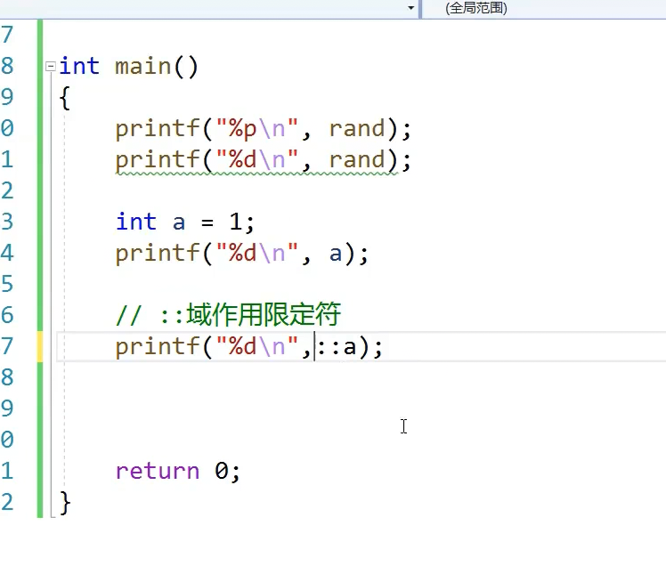 我就想访问全局a咋访问。域作用限定符左边什么不写默认全局域