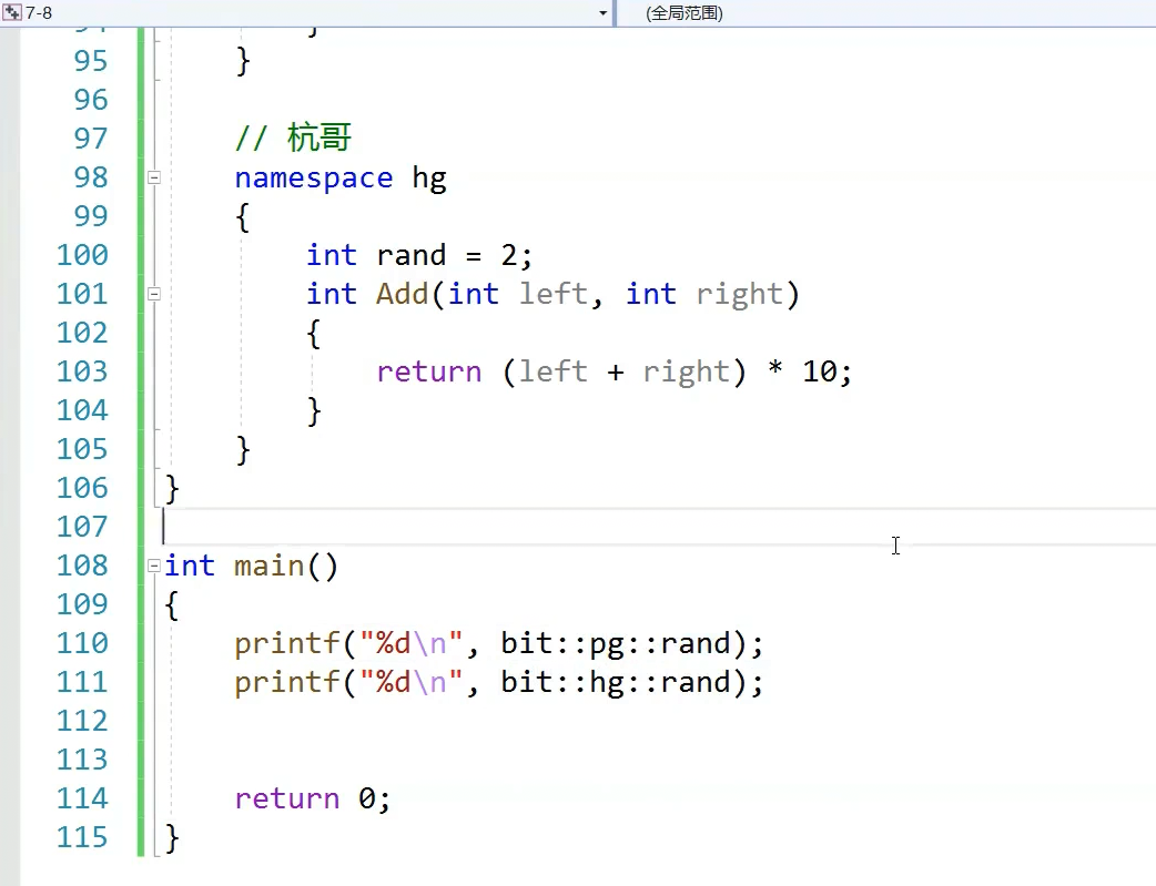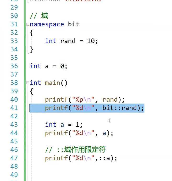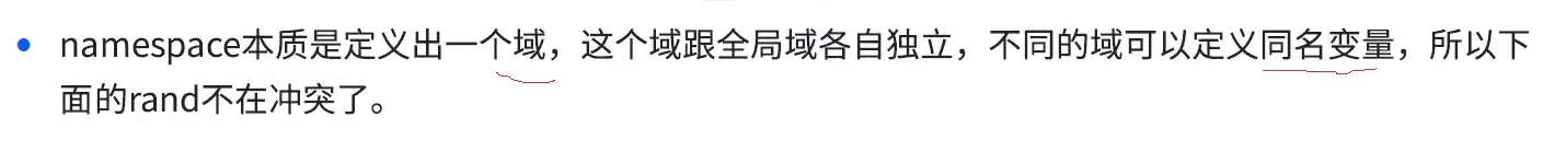 rand的生命周期还是全局的但是他受这个域限制了,访问时候只有指定才能查找到他,只能在全局位置定义域