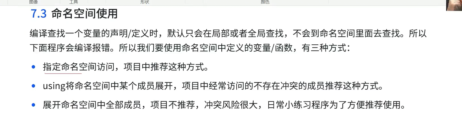 但是每次都要指定太麻烦,以下是展开所有命名空间