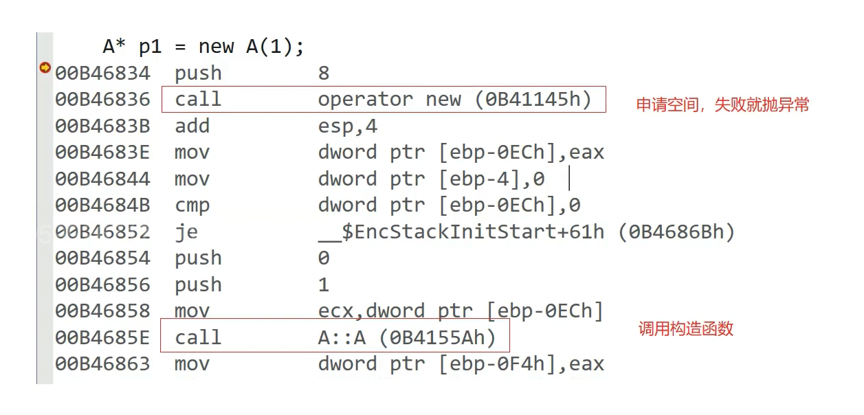 编译器对这些编译,new又不是一个函数调用,那他怎么转换成operator new 和这个东西,编译时候直接生成这个指令