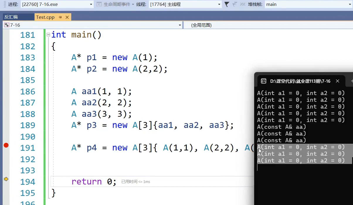 这时候有些烦,调用的是拷贝构造,第二种写法直接用匿名对象: