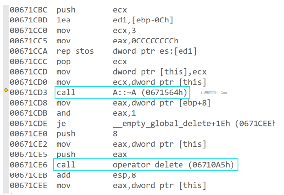 这样好像没什么问题,但这时候相比于delete少调了析构