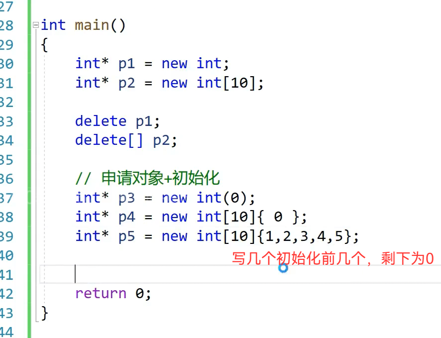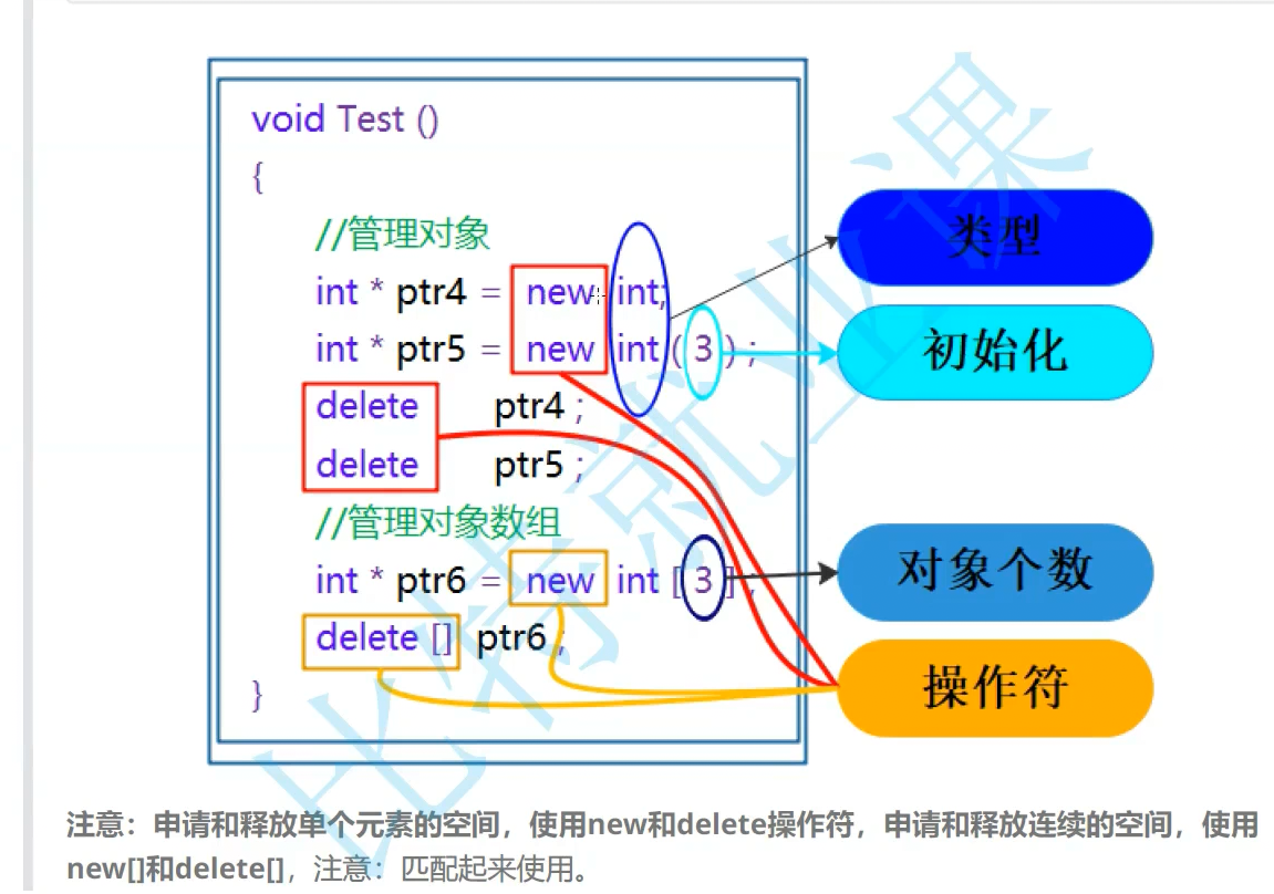 申请空间可以对于自定义类型自动调用构造函数。内置类型没这些问题,