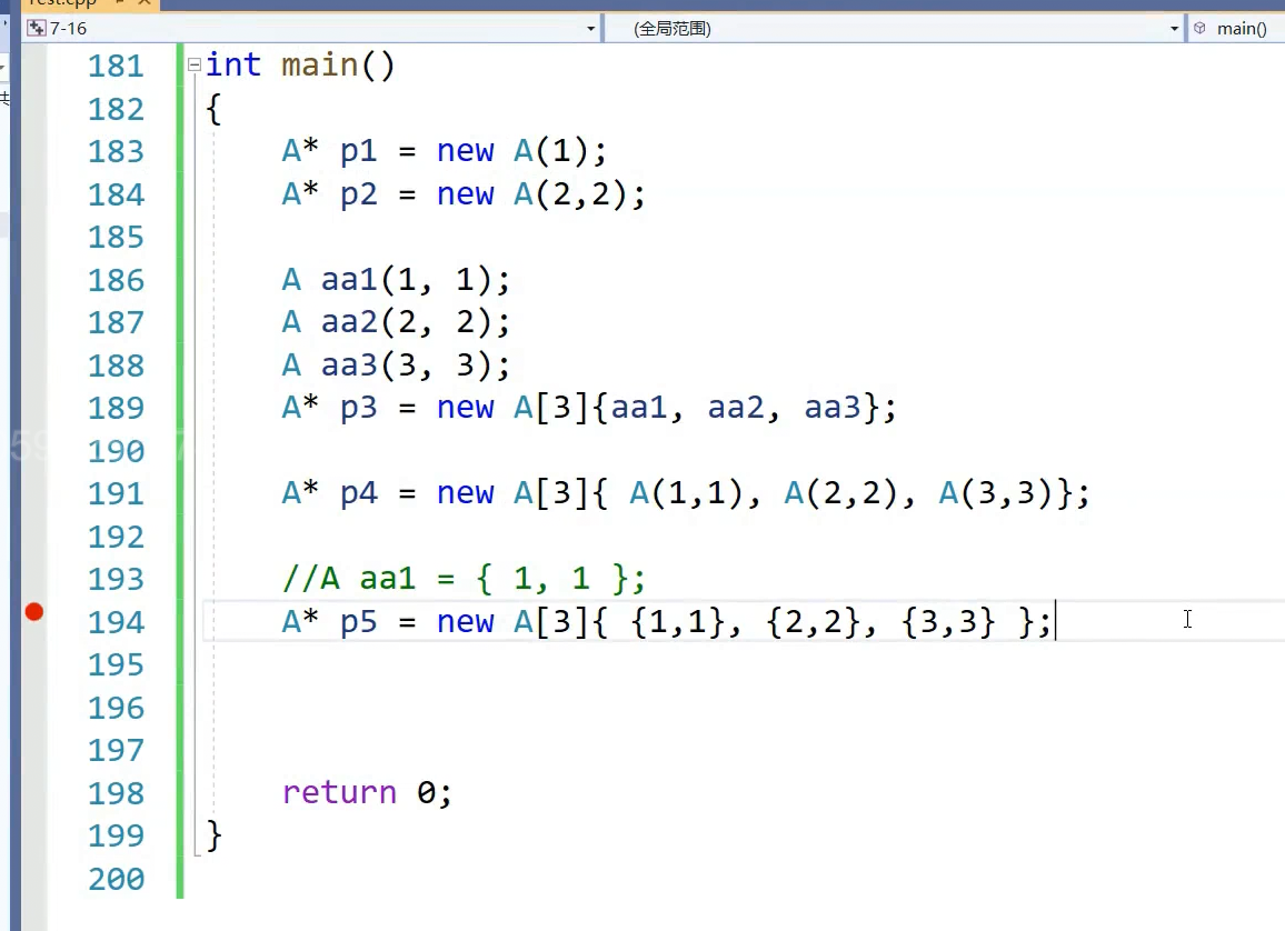 A* p2 = new A(1);