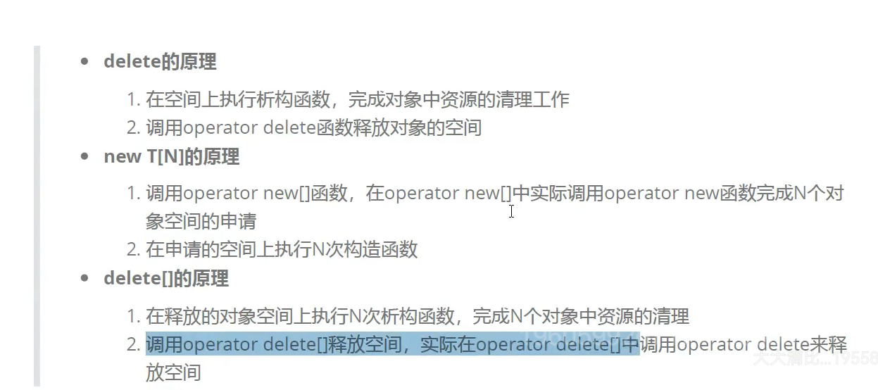 这样去写也不会有内存泄露,new[]调用operator new【】调用了operator new调用malloc,实际空间最终还是malloc,,delete是operator deletor【】调用了operator delete调用free, 所以空间不涉及构造和析构还是malloc和free