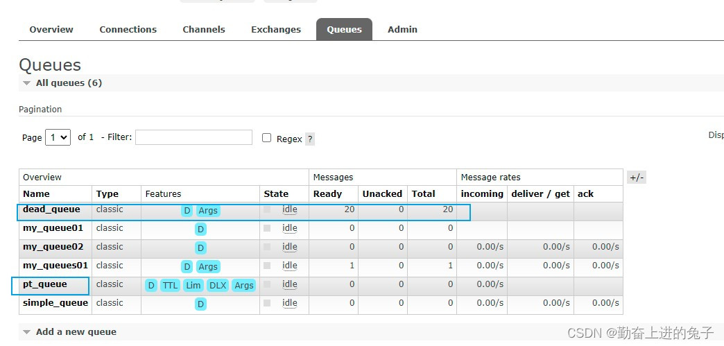 死信队列,英文缩写:DLX 。Dead Letter Exchange(死信交换机),当消息成为Dead message后,可以被重新发送到另一个交换机,这个交换机就是DLX。