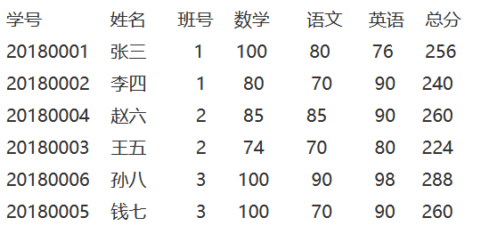 1.txt中保存了若干同学的成绩信息,按如下方式对记录排序再存回到1.txt中。