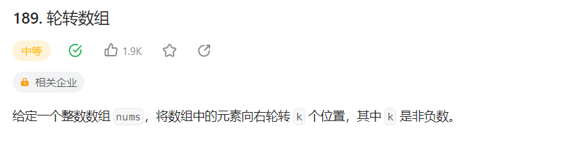 机试打卡 -14 轮转数组(数组) ①nums=nums[::-1],会改变nums的地址;nums[:]=nums[::-1],不会改变nums的地址。②数组翻转的代码 nums[:k]=nums[:k][::-1];nums[k:]=nums[k:][::-1]这种写法虽然简单,但效率不高。因为若 k 很大时,每次都需要执行。这两个操作,引入模运算可以应对k较大的情况。