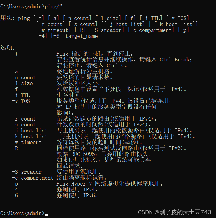 使用 ping/? 命令了解该命令的各种选项并实际使用。