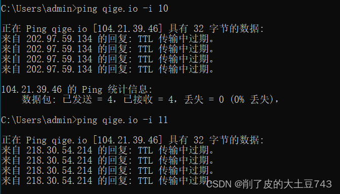 请掌握使用该命令后屏幕显示的反馈回来信息的意思,如:TTL、时间等。