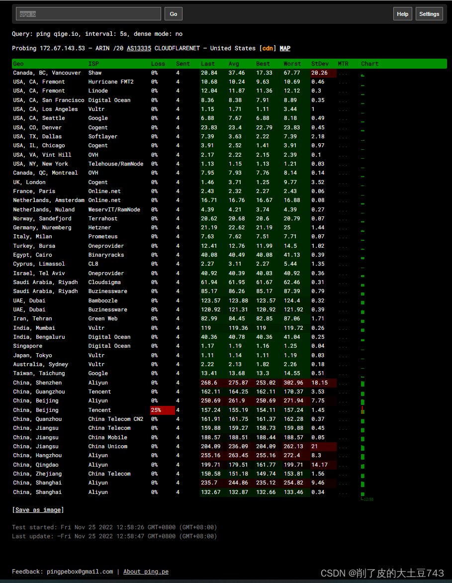 ping.pe 这个网站可以探测从全球主要的 ISP 到某站点如:https://qige.io 的线路状态,当然也包括各线路到该主机的路由情况