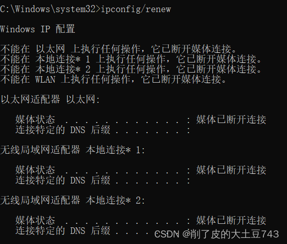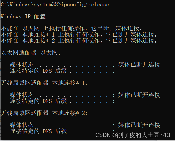 一般地,我们自动获取的网络配置信息包括:IP 地址、子网掩码、网关 IP 以及 DNS 服务器 IP 等。使用 ipconfig/release 命令释放自动获取的网络配置,并用 ipconfig/renew 命令重新获取,了解 DHCP 工作过程和原理。